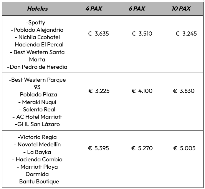 Luego los acompañarán al aeropuerto donde tienen vuelo a la ciudad de Medellín o Bogotá, dependiendo dónde soliciten terminar el viaje.