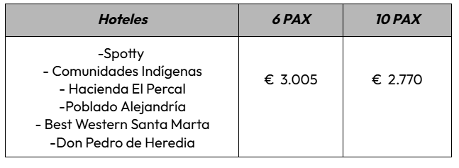 • Cancelación entre 15 y 10 días antes del inicio del viaje: Se aplicará un cargo de cancelación del 75% del valor total del viaje.