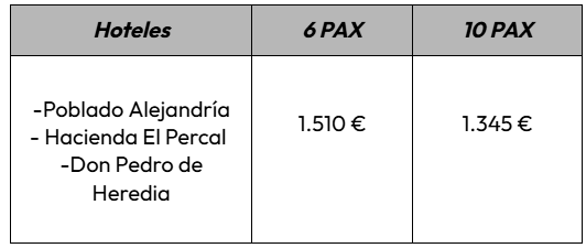 Precio por persona: EUR 100