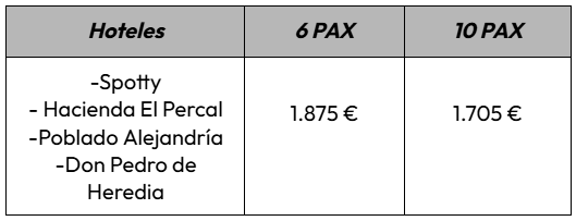 VALOR DEL VIAJE POR PERSONA EN EUROS EN ACOMODACIÓN TRIPLE**