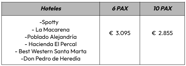 - Vuelos de línea regular dentro de Colombia, clase turista, con una maleta de 23 kilos. (El Vuelo hacia y desde la Macarena el equipaje es de máximo 15 kg).